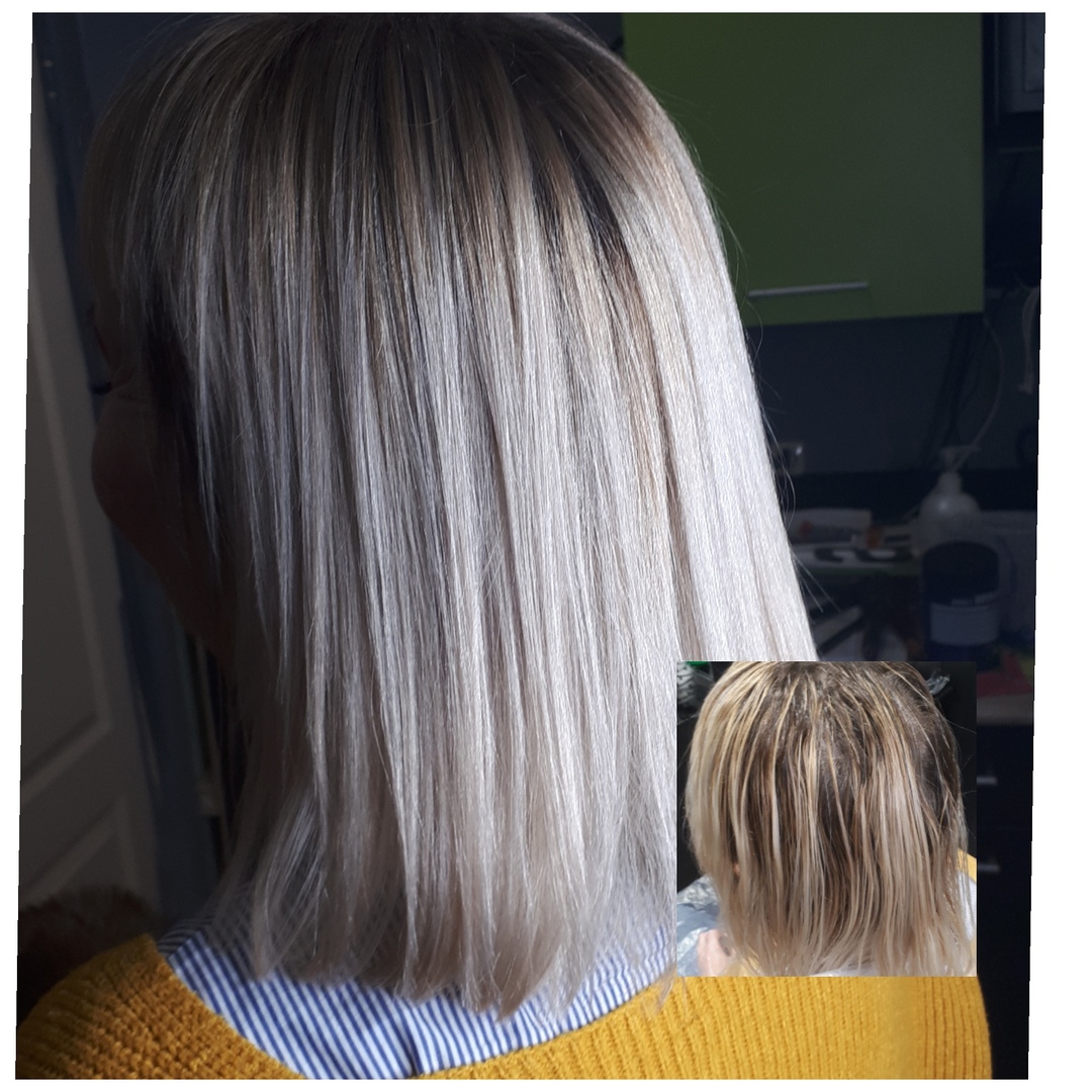 Используется: осветляющий состав в составе которого входят бонды для сохранения качества волос